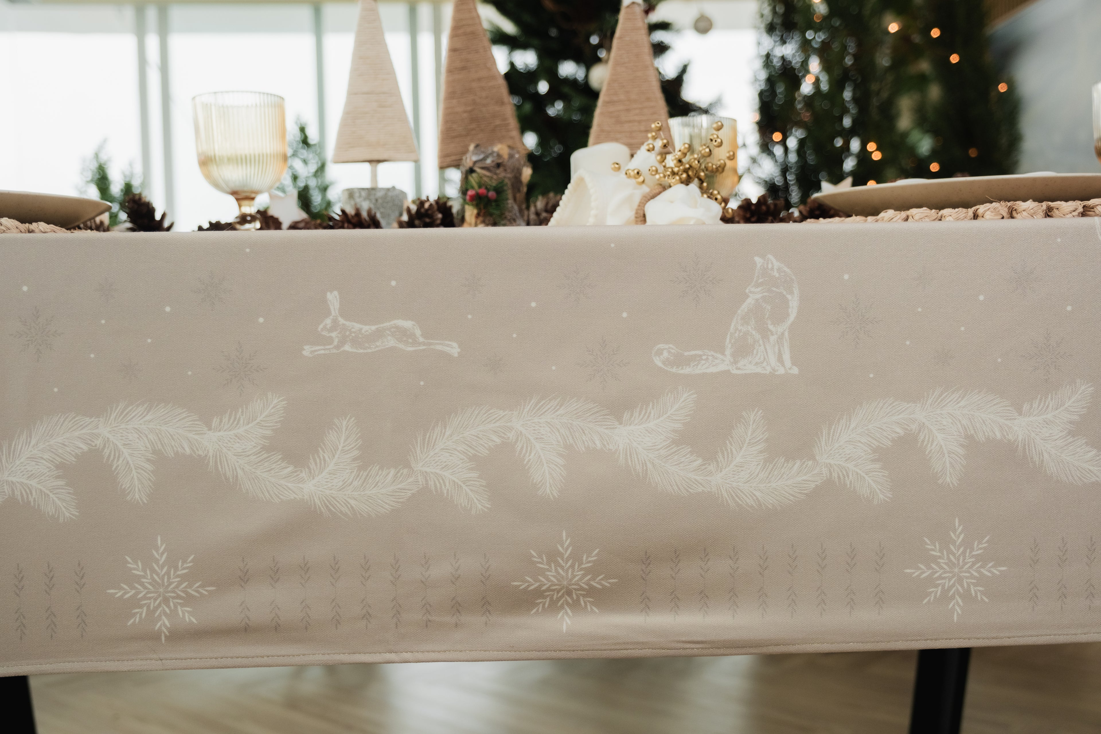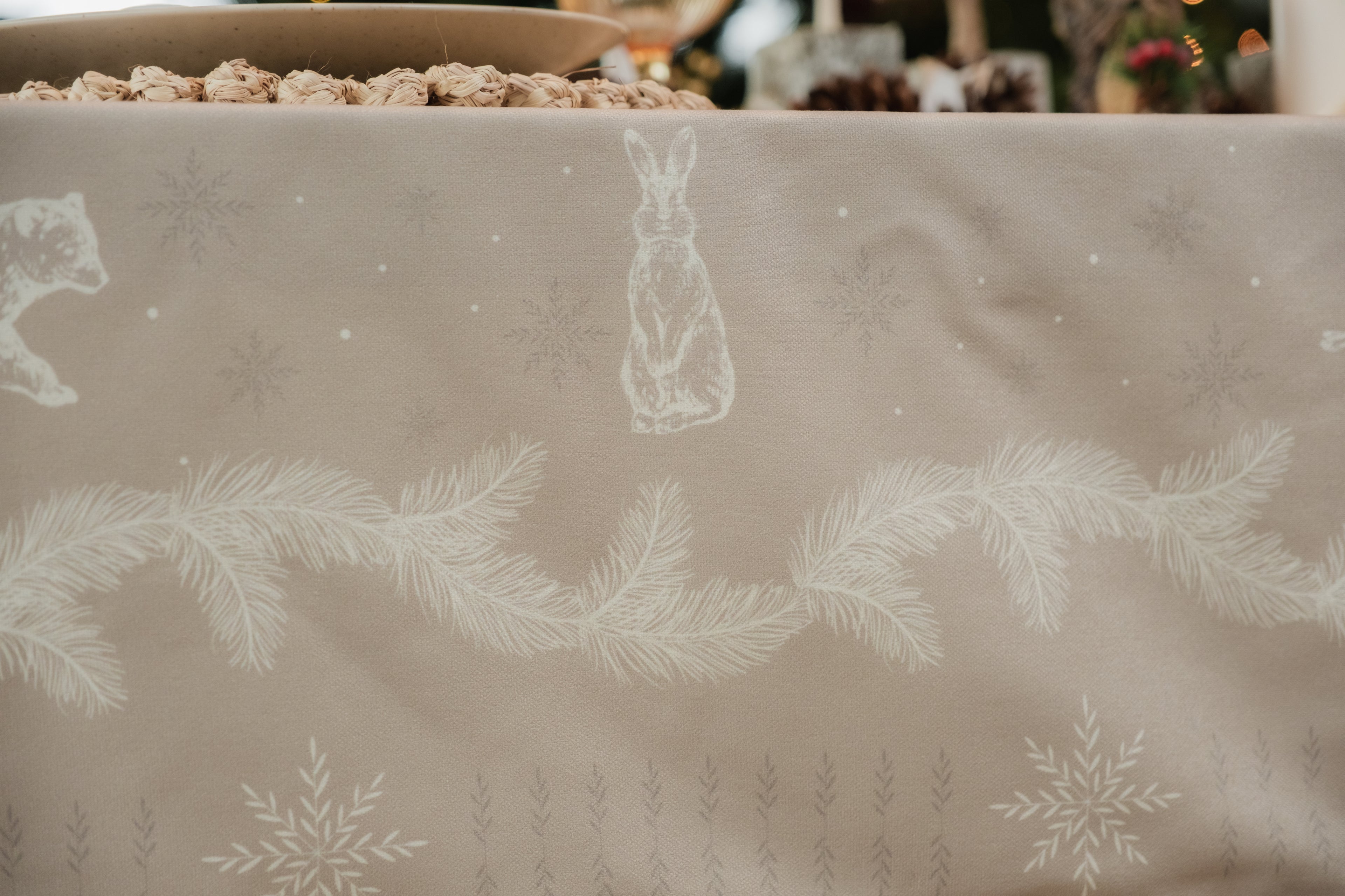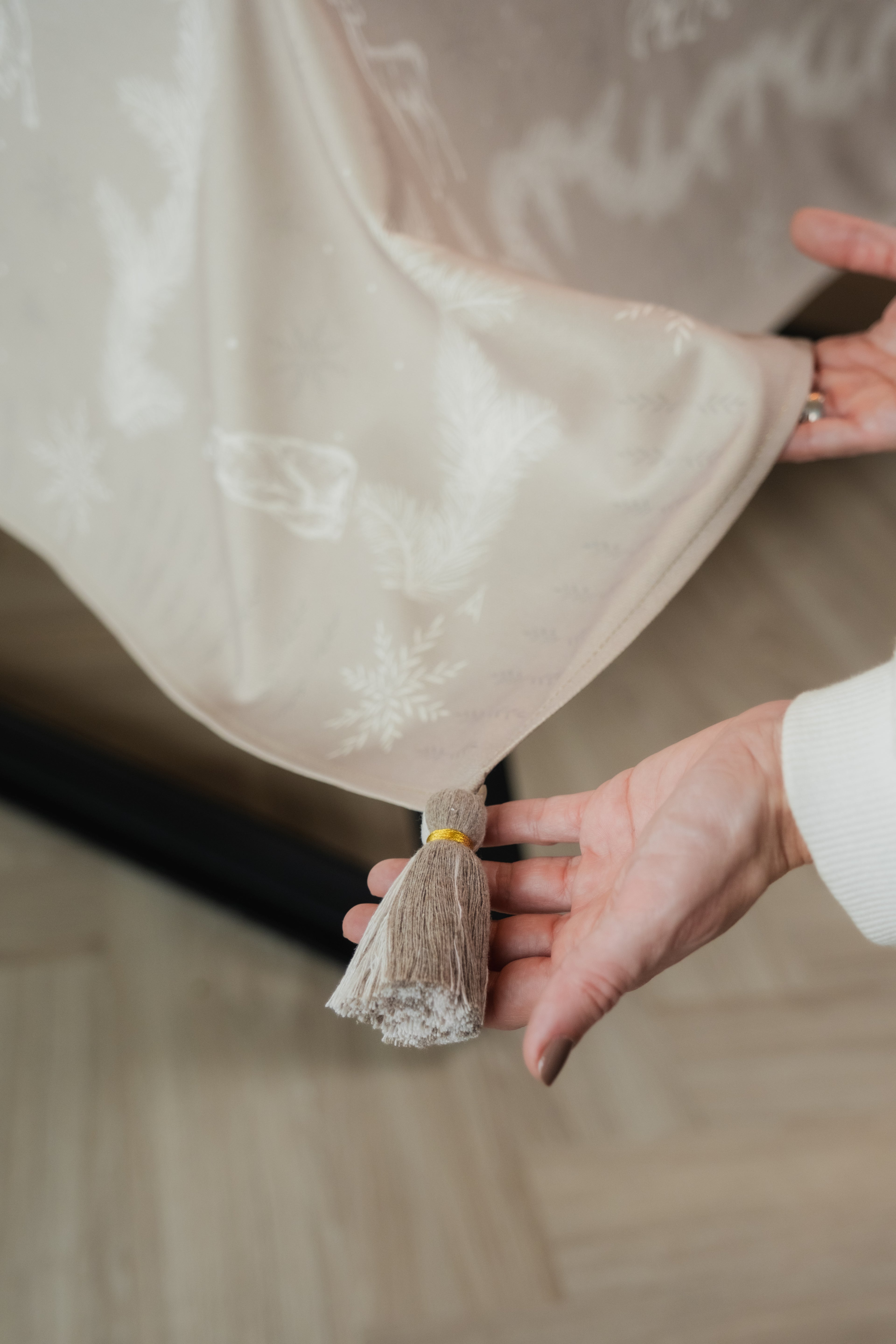 Mantel en Tejido Plano – Estilo Natural y Protección Antiderrames, Antifluídos. Confeccionado en poliéster con recubrimiento de Scothcgard. Incluye borlas removibles en las esquinas.