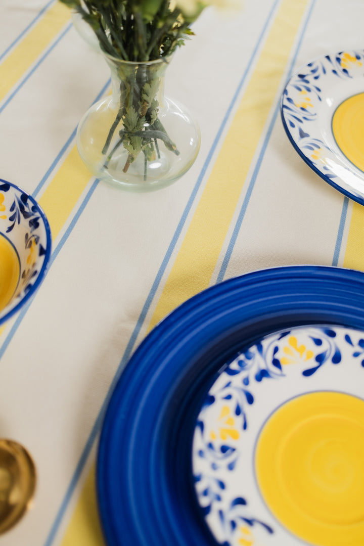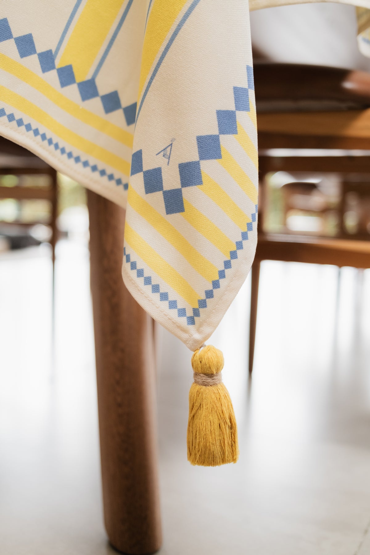 Mantel en Tejido Plano – Estilo Natural y Protección Antiderrames, Antifluídos. Confeccionado en poliéster con recubrimiento de Scothcgard. Incluye borlas removibles en las esquinas.
