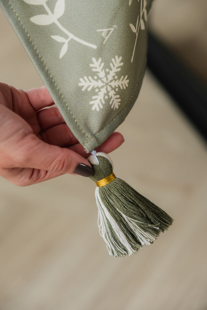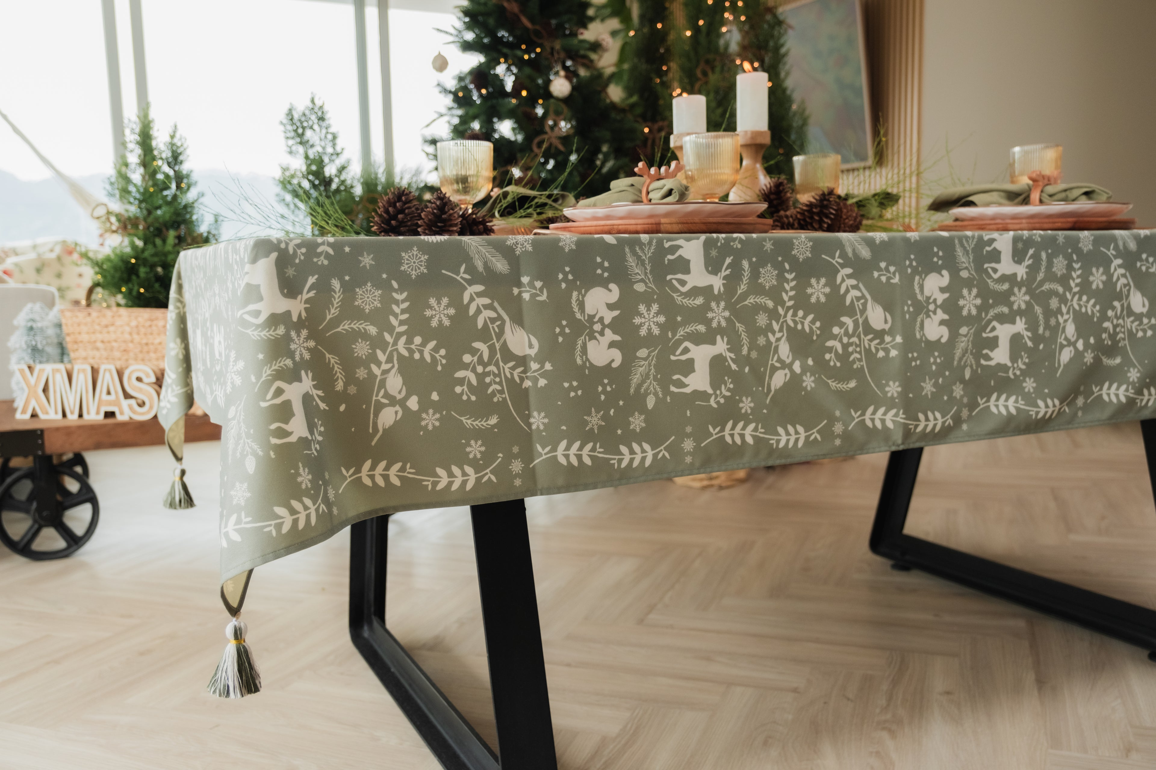 Mantel en Tejido Plano – Estilo Natural y Protección Antiderrames, Antifluídos. Confeccionado en poliéster con recubrimiento de Scothcgard. Incluye borlas removibles en las esquinas.