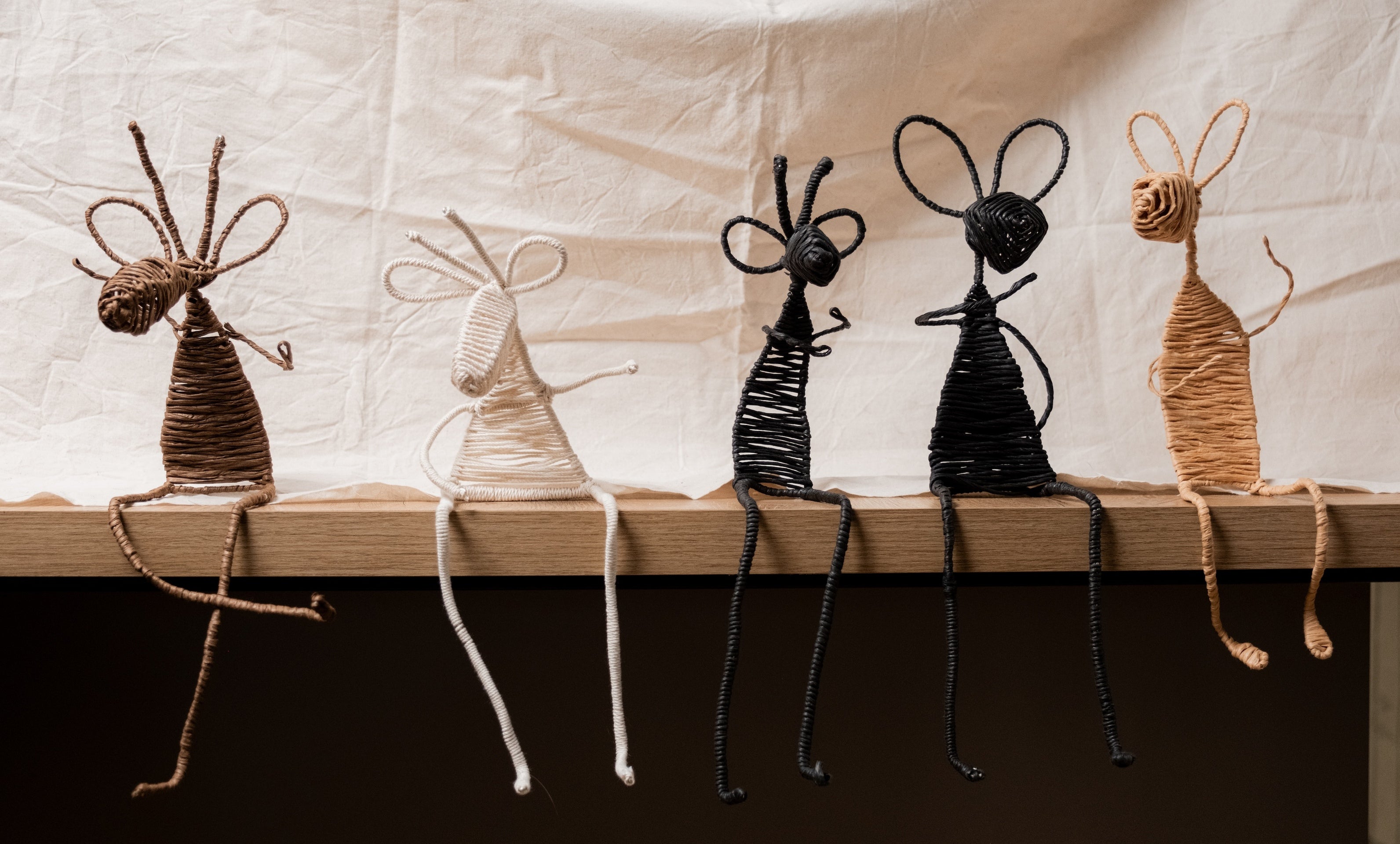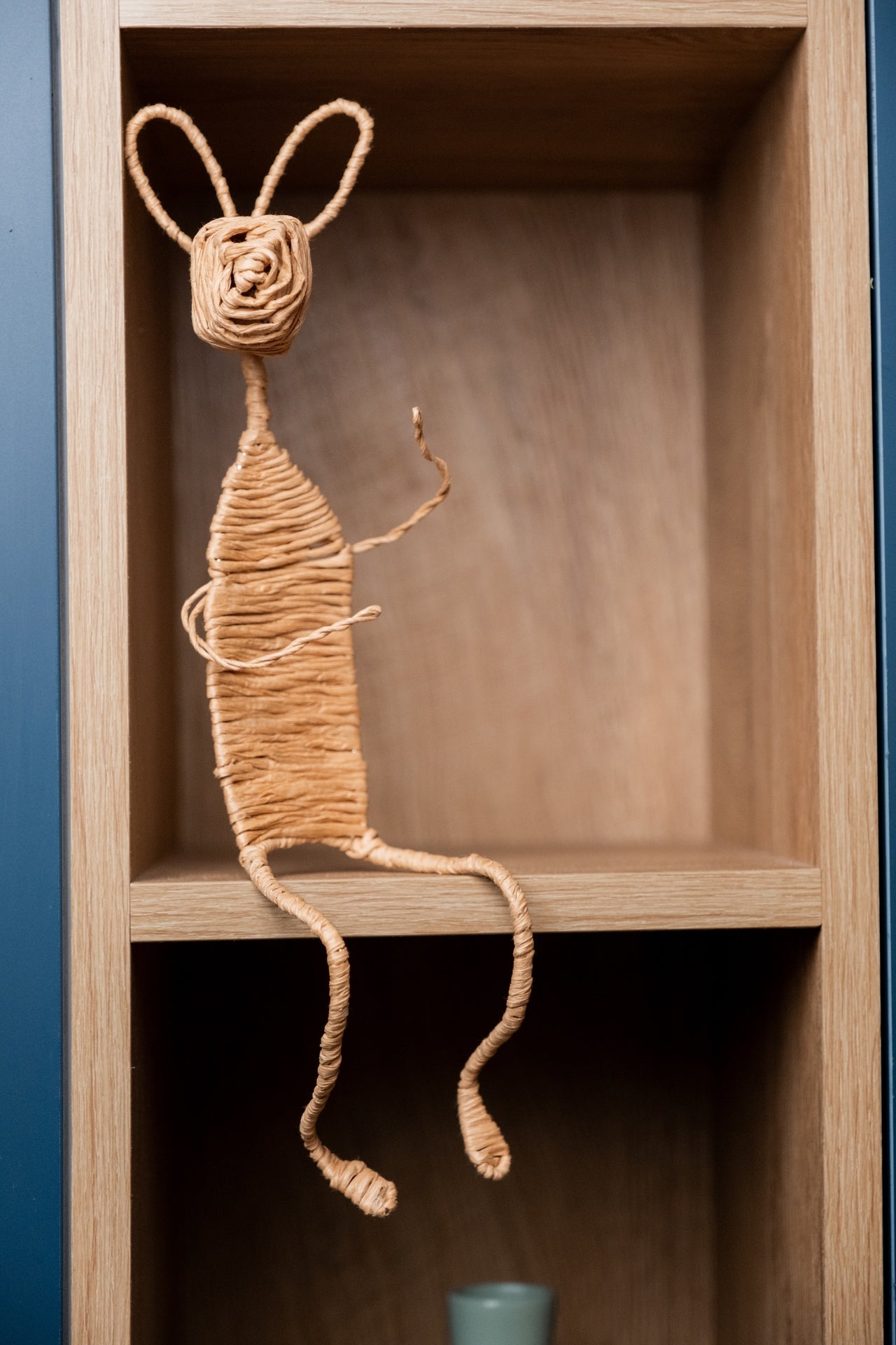 Tejido a mano en craft y/o hilo parafinado sobre una estructura de alambre Altura máxima: 38 cms
